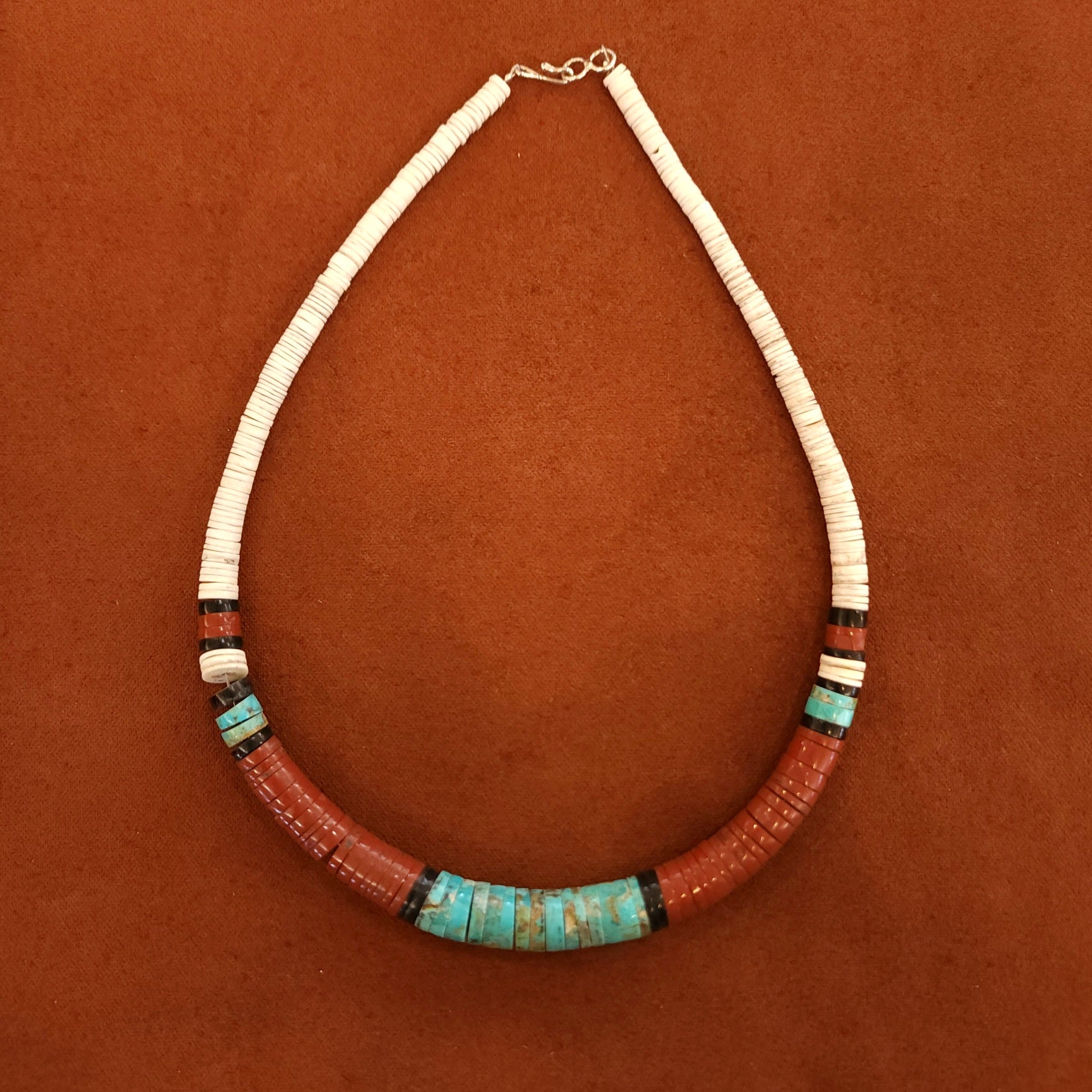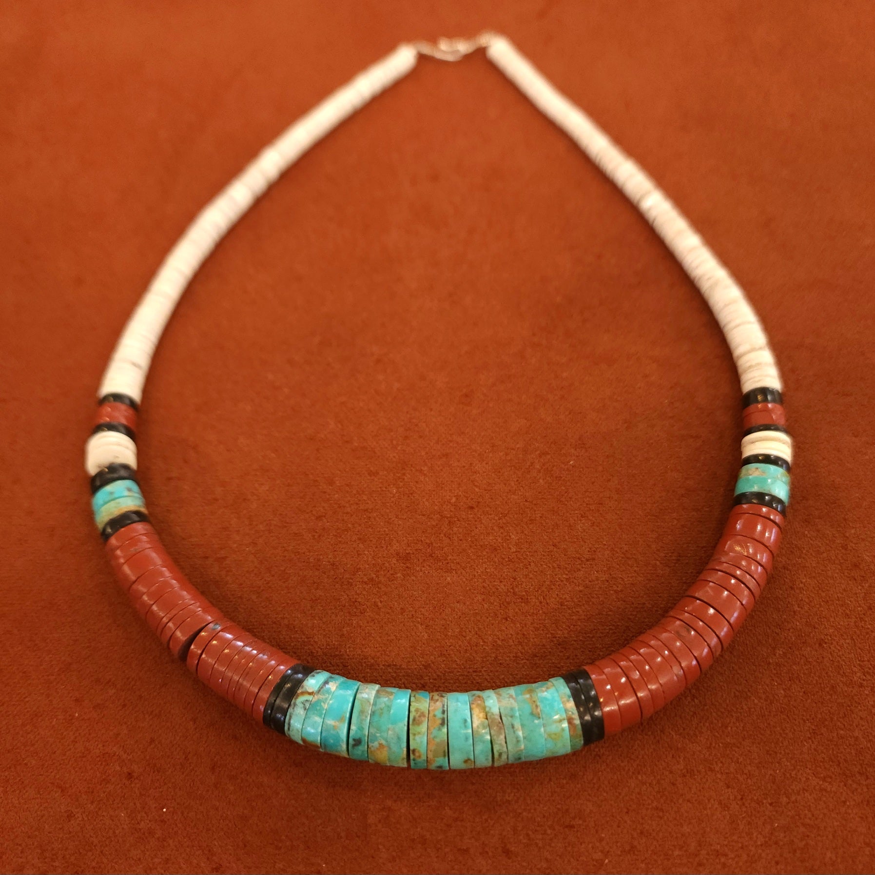 Hand-rolled bead turquouse necklace with handmade corn beads from Kewa Pueblo