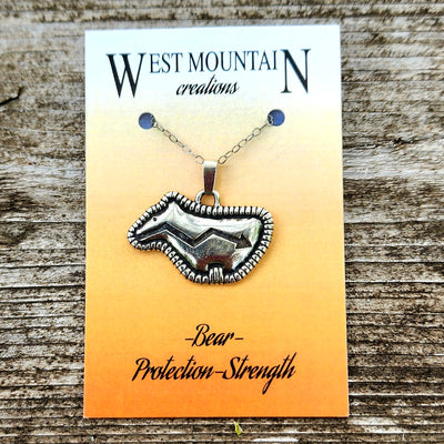 This sterling silver Protective Bear pendant was designed by Chochiti and Laguna Pueblo jeweler West Mountain. He has been an award-winning potter since 1998 and has been designing jewelry for years. It is cast from the original and is on a sterling silver chain.