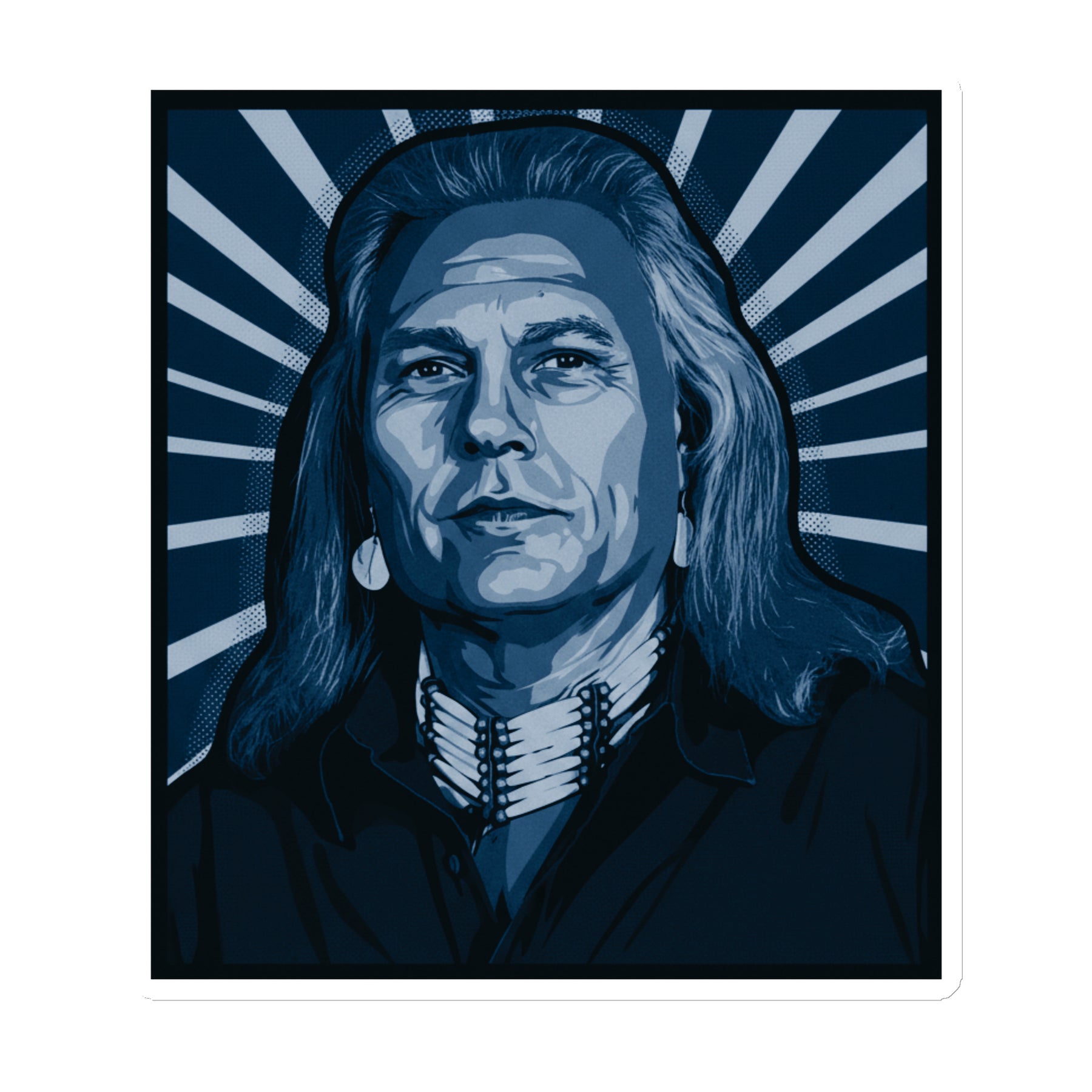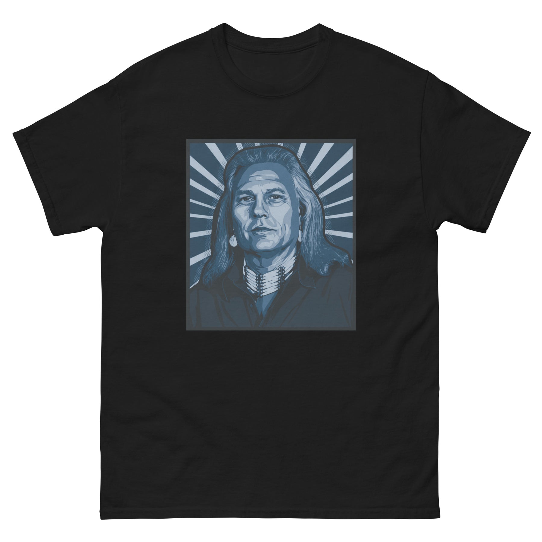 Turtle Mountain Band of Chippewa citizen Shaun Chosa created this image of Michael Horse. We loved it and thought it would make a wonderful t-shirt. We hope you love it too! It is available in Ash White or Black in sizes small to x-large.