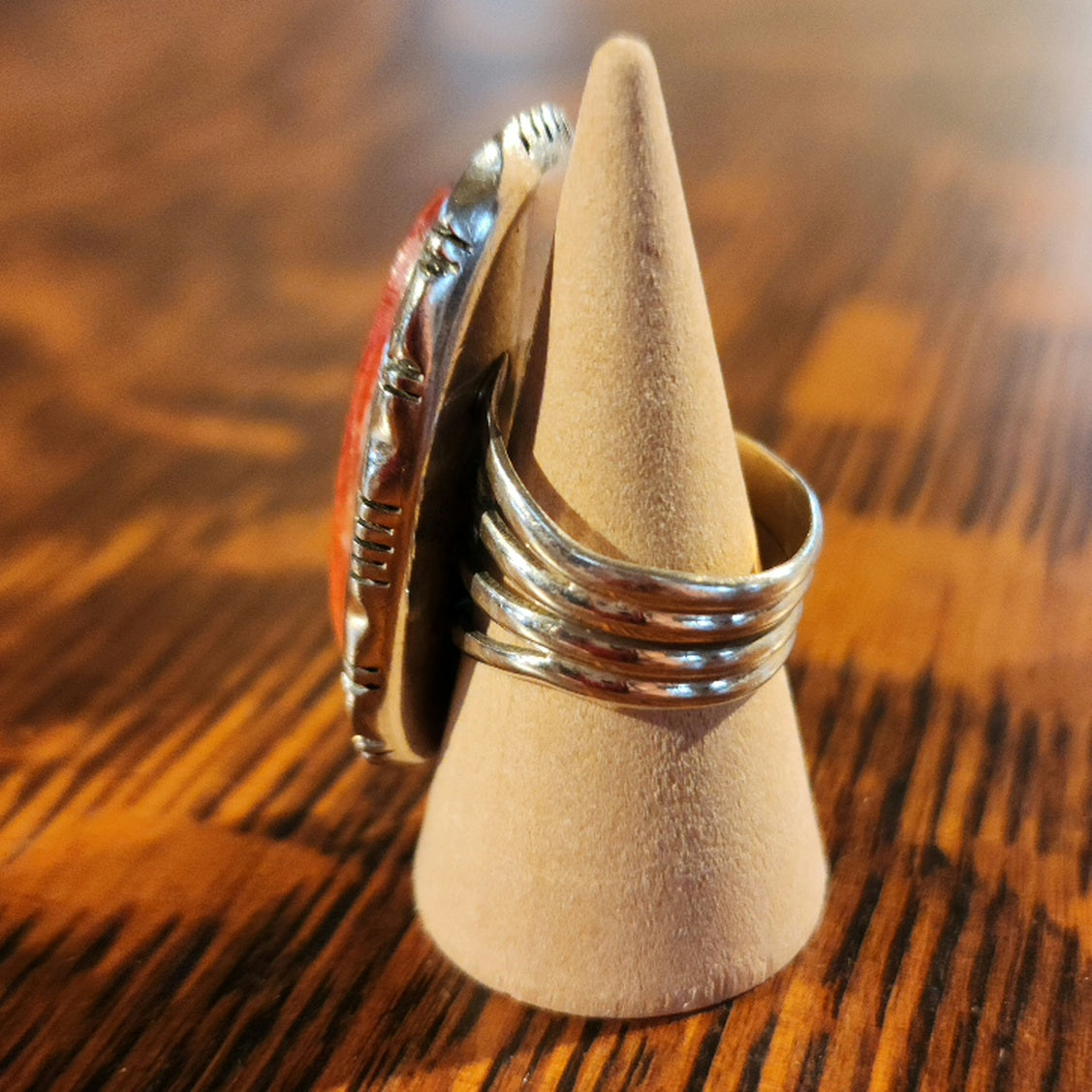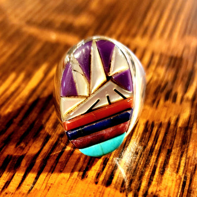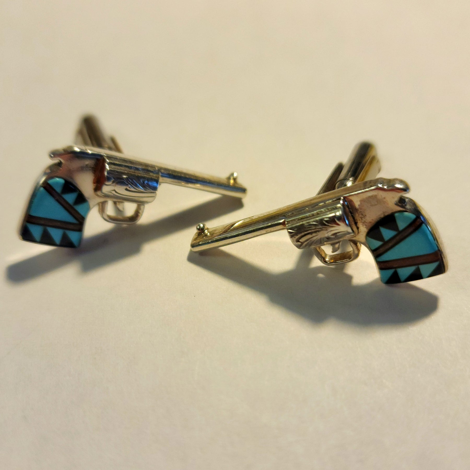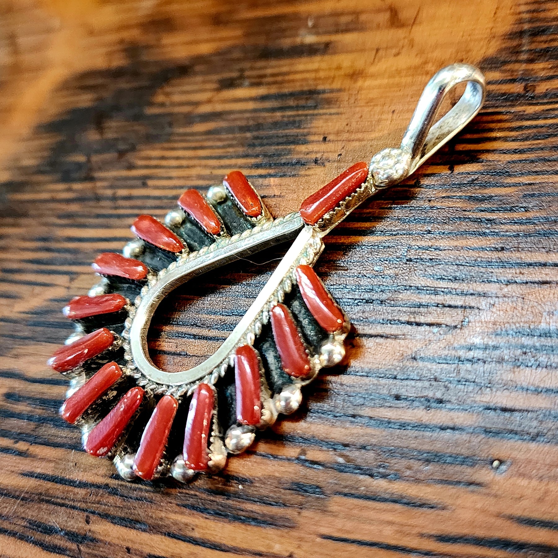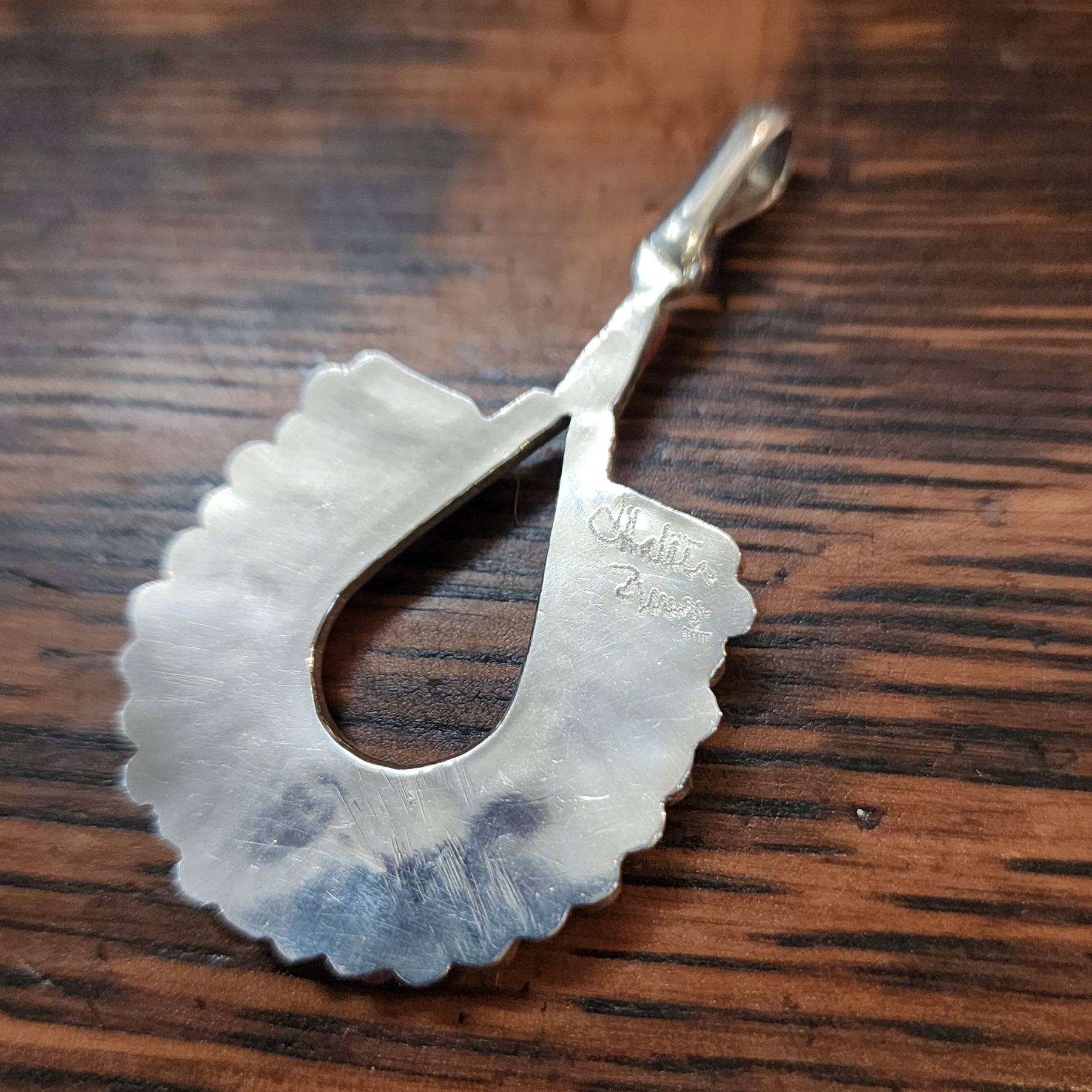 Ric has received numerous awards from competitions at the Heard Museum and Sante Fe Indian Market, including Best of Show, Best of Class, and the Raymond Dewey Memorial Award for Excellence in Tufa Stone Casting. They dangle from sterling silver wires. These earrings were in the collection of the owner of Gathering Tribes.